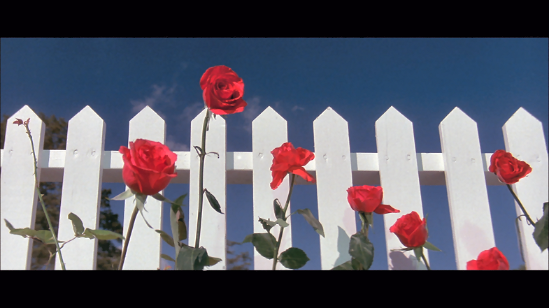 The sugary facade of American small town life takes it on the chin in Blue Velvet. Initially, the viewer is given scenes of sun dappled streets, crossing guards, fire trucks, white picket fences and stunningly gorgeous flowers; but eventually we witness a man, who earlier was watering his lawn, grasp at his neck as if something might have stung or bit him, and fall to the ground while the camera delves deep under the well manicured lawn, where he lay gasping for breath, to discover all manner of creepy crawling things going about their dirty business...that which lies beneath?
